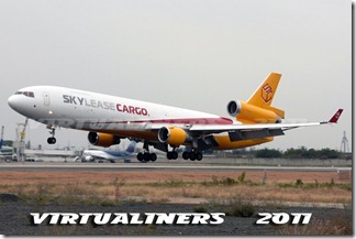 El Boeing 757 de UPS desacelerando por pista 21, el MD-11 de SKY LEASE, rodando hacia la plataforma de carga: