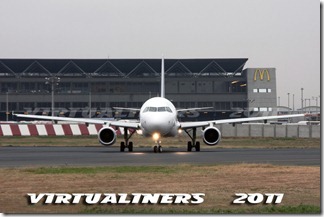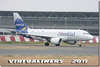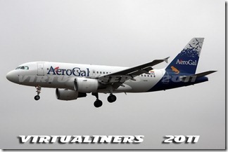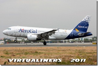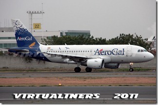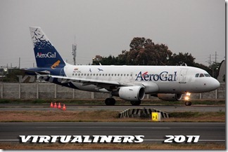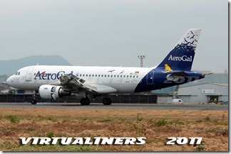 AEROGAL, A319, HC-CLF, aterrizando pista 21: