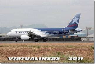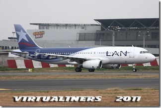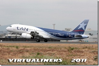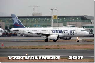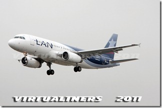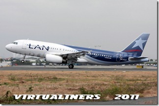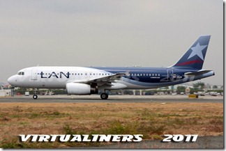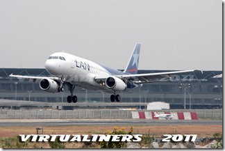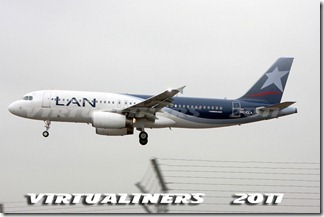 LAN Ecuador, Airbus A320, HC-CLA (EX CC-BAA) aterrizando en pista 21: