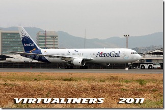 AEROGAL, Boeing 767, HC-CIJ, siendo tractado al puente. Este es el único Boeing 767 en la flota Aerogal: