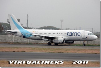 TAME, Airbus A320, HC-CGJ, en final a pista 21: