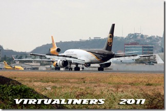 El Boeing 757 de UPS desacelerando por pista 21, el MD-11 de SKY LEASE, rodando hacia la plataforma de carga: