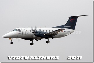 SAERO, Embraer E-120, HC-CDM, en final corto pista 21: