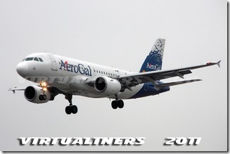 Aerogal, A319, HC-CKM, en final pista 21: