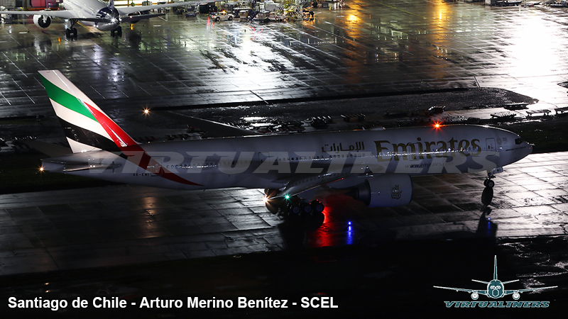 Ahora bien, lo interesante es que ahora Emirates llegaría a Chile, a partir del Jueves 5 de Julio del 2018 con material Boeing 777-21HLR, desde Dubaí, vía Sao Paulo con 5 frecuencias a la semana, todo bien hasta allí, el problema, para las fotografías, es que el vuelo tiene horario nocturno, llegando a Santiago a eso de las 21:45 y saliendo a las 02:20.